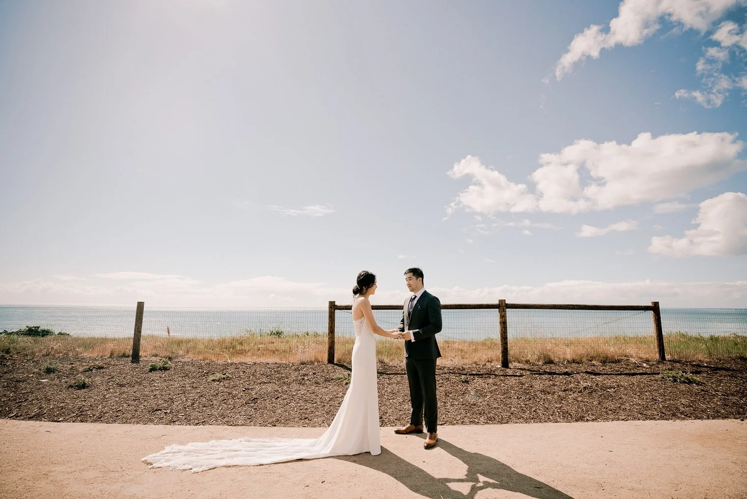 E & R envisioned a waterfront wedding, and we found the perfect venue with both water and woods for them! The golf club venue was set in the trees and mountains, and had sweeping views of the Santa Cruz Bay. Good food was a priority for E & R, so we worked with the catering team to build a custom menu featuring classic Asian banquet dishes that reflected the couple’s Asian tastes. Most notably, we splurged on scallop appetizers that were served on scallop seashells. These were SO good that guests lined up at the entryway to stop servers for a delicious bite!