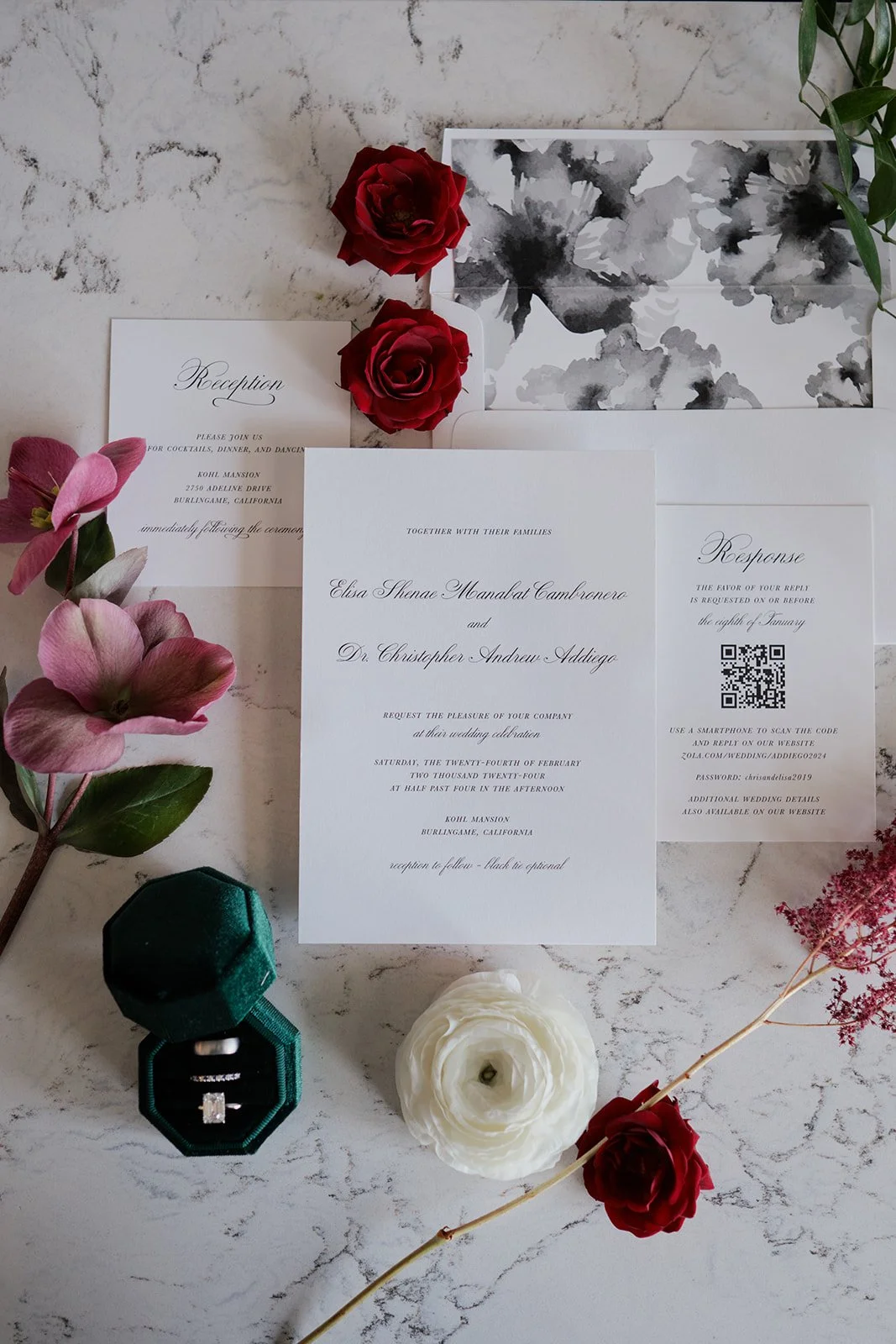 California winter weather is holding strong with one last (??) rain storm this week. This is the perfect opportunity to feature C & E’s stunning moody winter wedding! It was such a blast being able to flex our creative muscles and design their epic “Beauty and the Beast” meets-refined-elegance wedding day.