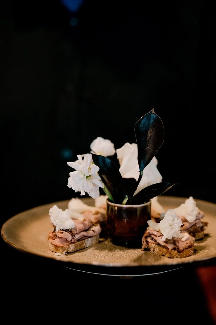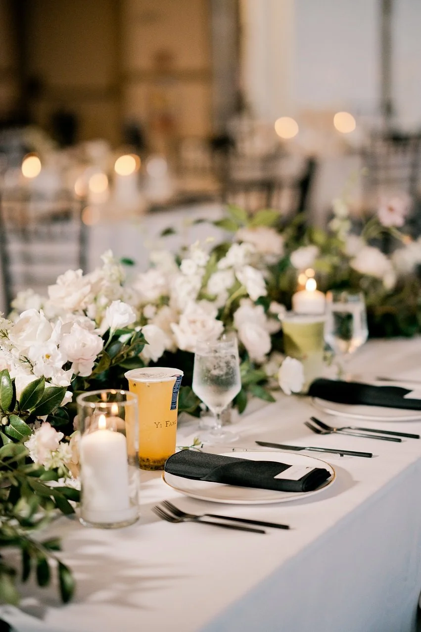 Classy, minimal, and clean themes were still a priority for us. So, we went for a classy and romantic affair (“light & airy meets Audrey Hepburn”) by picking out simple and elegant elements. Our color palette was white, black, and blush pink. We also wanted to lean into the Residence’s dressier vibe so we decided to go with simple “black-and-white” for the reception design (some of the décor we sourced ourselves for the couple!). The Bride and Groom share a love for Disney and Star Wars (think: Disney’s Club 33 Restaurant!), so we made sure to sprinkle them into various décor such as the placecards and Grand Entrance.